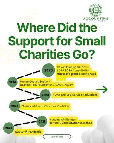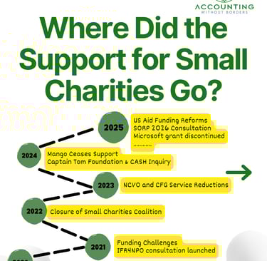 This creates a gap where many small charities struggle to access the financial skills and experience needed to operate effectively. Areas like budgeting support, financial planning, tax advice (including Gift Aid), and even basic bookkeeping and reporting can be complex and daunting for non-finance professionals who often manage these tasks in smaller organisations.... While national bodies like the Charity Finance Group (CFG) and NCVO offer resources and guidance..., there is a recognized need for more practical templates, digital resources, and tailored support to help providers and charities navigate these complex areas efficiently.